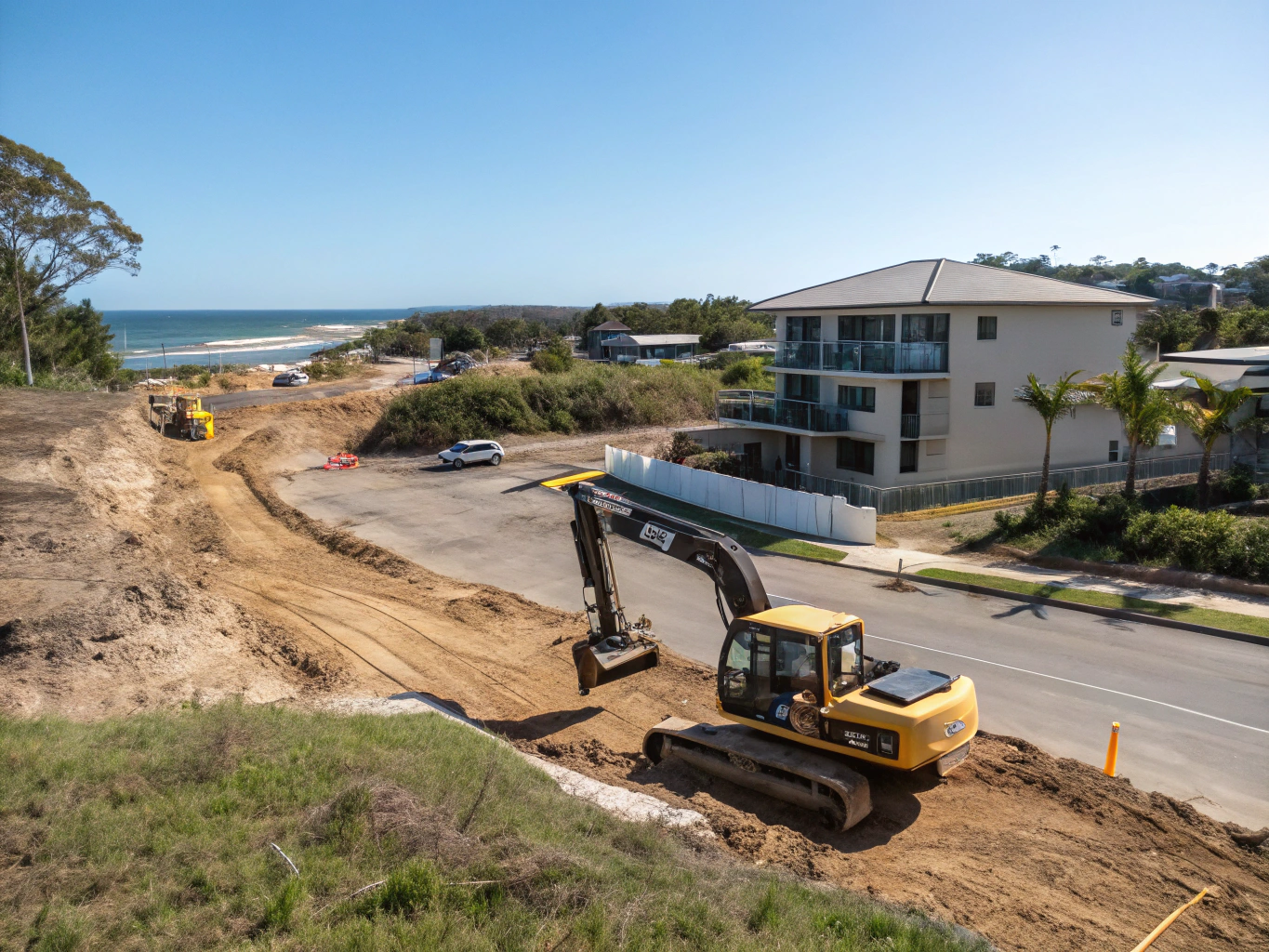 Whether your job is a single residential block in Toormina or a multi-stage commercial development along the Coffs Harbour highway corridor, we have the equipment and crew to handle it properly — and the concrete expertise to take the project through to the finished surface when the groundwork is done.
