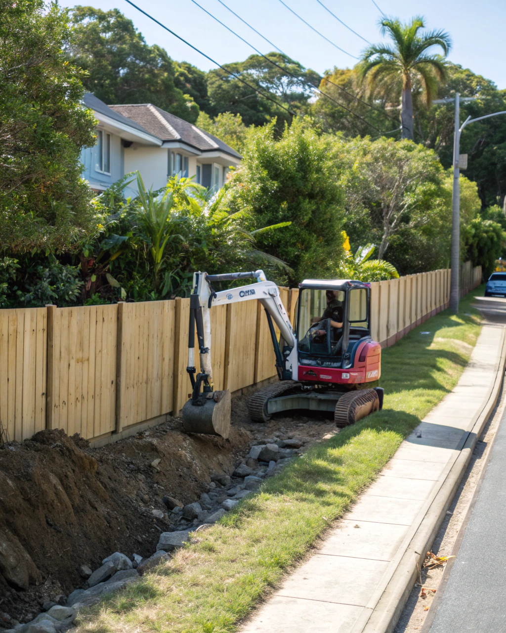 On smaller residential sites, the priority is precision and care — working close to existing fences, established gardens, and neighbouring properties without causing damage or disruption. Access is often the first challenge, and knowing how to work around it efficiently comes from doing it repeatedly across Coffs Harbour’s established suburban streets.