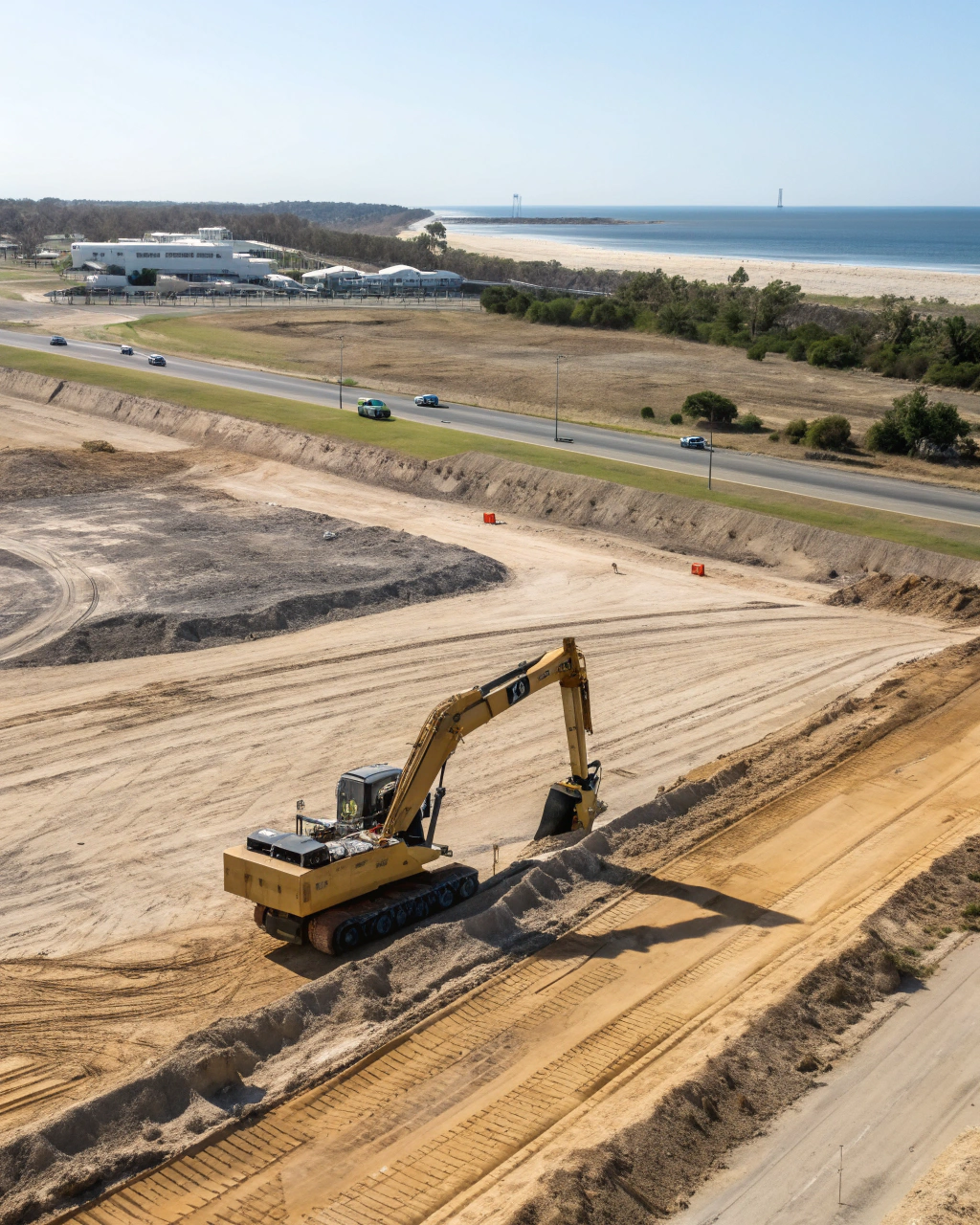 On the commercial side, we handle bulk earthworks, site clearing, civil trenching, and pad preparation for development projects, industrial sites, and larger builds along the Mid North Coast corridor. These contracts demand efficient machine selection, coordinated spoil removal, and the ability to keep pace with a construction programme that has other trades waiting behind us.